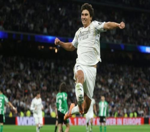在贡萨洛之前,皇马上一个能够在西甲赛场上演“完美帽子戏法”,即左右脚和头球各攻入一球的球员,还要追溯到2018年的C罗。出身皇马青训的贡萨洛本场只是第一次在西甲赛场进球,便上演如此神迹。贡萨洛本场的帽子戏法含金量相当高,他先是接到罗德里戈开出的任意球,头球首开纪录,用最简洁的方式为皇马打开胜利之门。下半场伊始,在贝蒂斯调兵遣将意图扳平比分之际,又是贡萨洛干脆利落的右脚抽射破门,为皇马基本锁定胜局。最后时刻贡萨洛在禁区内左脚脚后跟精妙破门,彻底让伯纳乌沸腾,这位小将第一次在伯纳乌球场有了巨星级别的待遇,全场球迷高唱他的名字,并在他被换下时送上整齐的掌声。